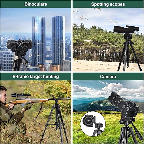 • 【High Quality Materials】The spotting scope tripod is made of aviation grade aluminum alloy containing magnesium and silicon. It has high strength, strong corrosion resistance and oxidation resistance, and weighs only 3.28 pounds. The height can be adjusted in a range of 20 to 74 inches. It is equipped with a adjustable center axis track and a rocking handle design for more precise height adjustment, meeting various shooting positions such as sitting, kneeling, and standing.