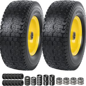 AR-PRO (2 Pack) 13×5.00-6 Flat Free Tire and Wheel Assembly, Solid Lawn Mower Front Tire with 3″ Centered Hub, 3/4″ Bearing extra 5/8″&1/2″, Compatible with Riding Mowers & Garden Tractors