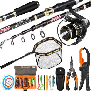 PLUSINNO Fishing Gear,Full Fishing kit Include Fishing Rod and Reel Combo, Tackle Box with Fishing Lures, Fishing Accessories, Fishing Pliers,Fishing Gifts for Men with Fishing Tool Kit