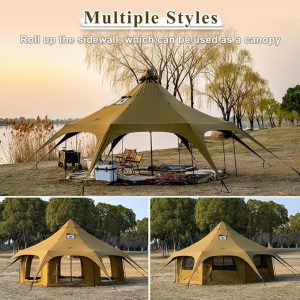 TOMOUNT Canvas Bell Tent Wall Tent with Stove Jack for Camping Glamping Yurt